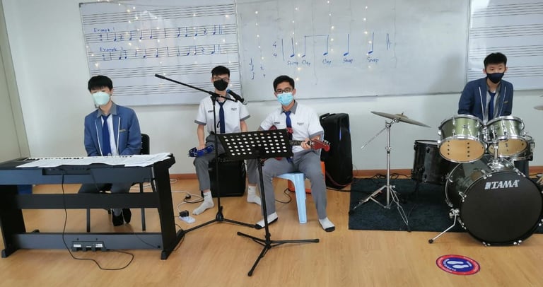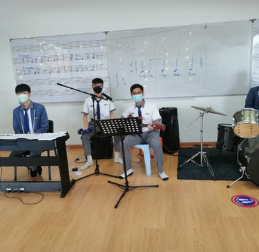 One day, we were having our usual chemistry class. Our teacher informed us that our principal is stepping down from his position. "Does anybody here want to do a farewell show for him?" She said. I was like "hell yeah" without any hesitation. So I asked De Luen if he wanted to play piano for me. At first, he was a bit sceptical, but he still got a yes. We started looking for the most suitable song to play. 'Friday I'm in Love' by The Cure and 'Don't Look Back in Anger' by Oasis came to my mind first. However, we had less than 2 weeks to practice. So those songs wouldn't work. Suddenly, I was like "Oh yeah! What about 'Hey Jude' by The Beatles?" At that moment, everyone brightens their eyes. But now it's only the two of us; we need a drummer. And I know my homie is always a "I know a guy" type of person. He said, "Zachary from next door knows how to play drums." He hooked me up with Zach and asked if he was okay to play drums for us. Of course, he was cool with that. So we split up the work, and we started practising the song.